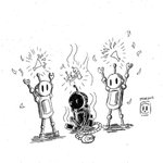 Inktober 2021 day 27: crispy (2/2) #inktober #inktober2021 #crispy #sketch #illustration #traditionalart #blackandwhite #robot #battery #broken #toast #smoking