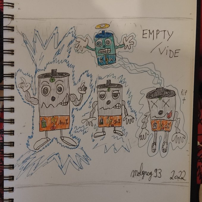 Jour 14 de l'Inktober ! Le thème du jour : "Empty/Vide"! Un dessin sois le signe des piles 🤣🤣🤣 #Inktober #inktober2022 #empty #vide #battery #cartoons #drawing instagram.com/p/Cjs6F84KONM/…