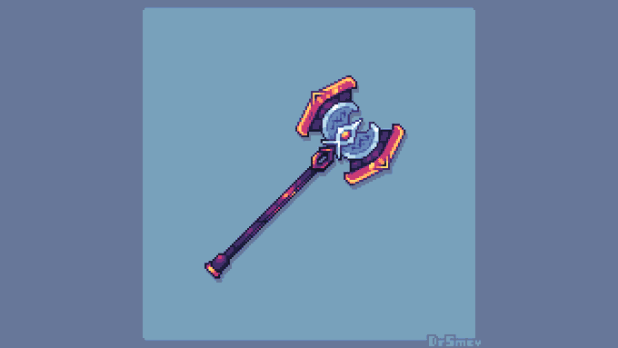 For today, I made a cool #BattleAxe :D! Process video in the thread! #PixelArt #ドット絵 #pixel_dailies @Pixel_Dailies @PyxelEdit