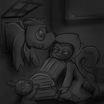 Moominktober/Inktober Day 12: Crime/Stuck Someone stole the treasure chest, so now Moomintroll and Snufkin are stealing it back—with Little My on hand. #moominktober #inktober #inktober2021 #moominvalley #moomintroll #snufkin #littlemy #crime #stuck #begaydocrime