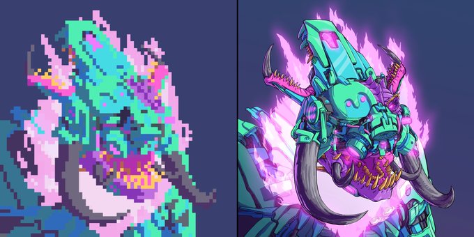 I heard people like #pixelart? Threw together a Pixel version of @IvanSunguroff's sweet #BedlamNFT Should I do more? #PixelBedlam