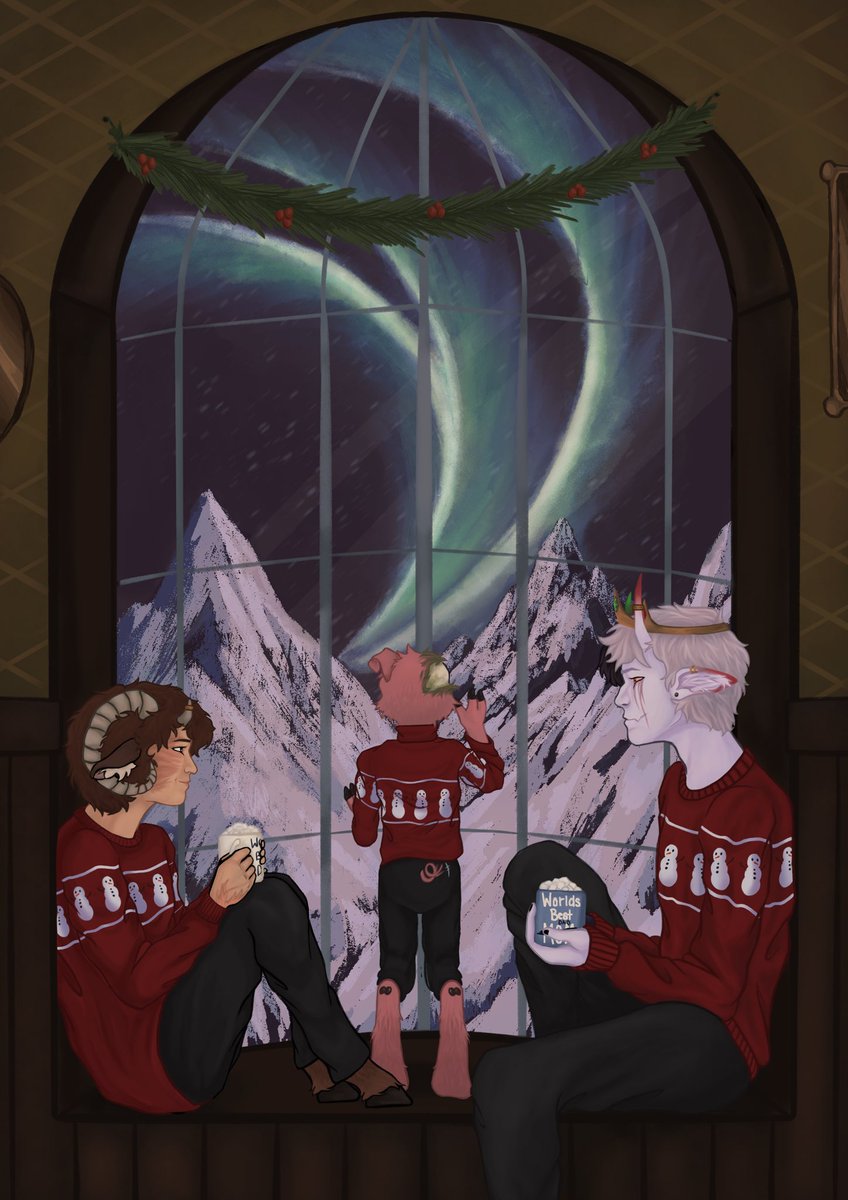 - My entry for the bootwt secret santa! My prompt was “Beeduo and Michael watching the northern lights” and I had a lot of fun with it! - - #ranboofanart #tubbofanart #beeduo #beeduofanart