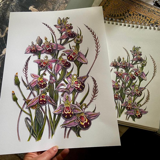 Just scanned my Bee Orchids in & printed out a proof. I'm quite pleased with it... which is rare. These will beee available to buy in my shop very soon. #BeeOrchids