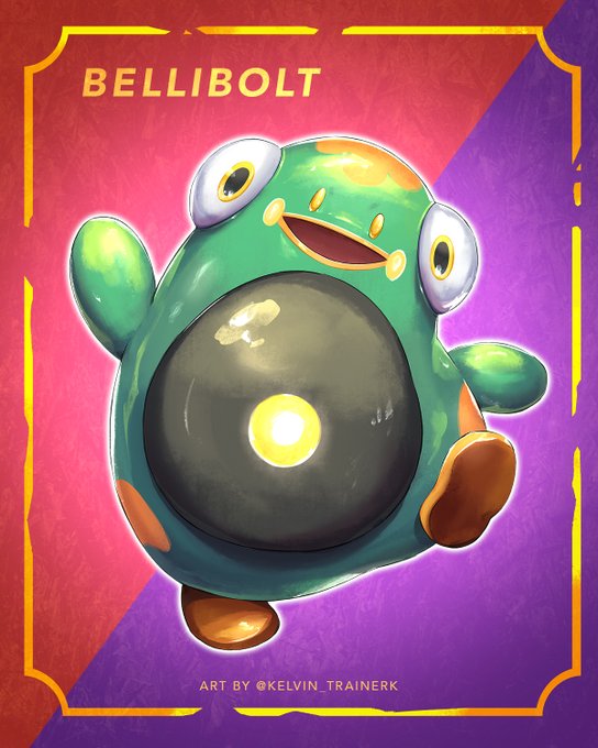 #BELLIBOLT squishing its way into the Paldean Dex! What do you think of this new #Pokémon? This Pokémon is shaped like a friend! 🥺💚 Enjoy this fanart! RTs are much appreciated! 🐸 #PokemonScarletViolet #PokemonArt