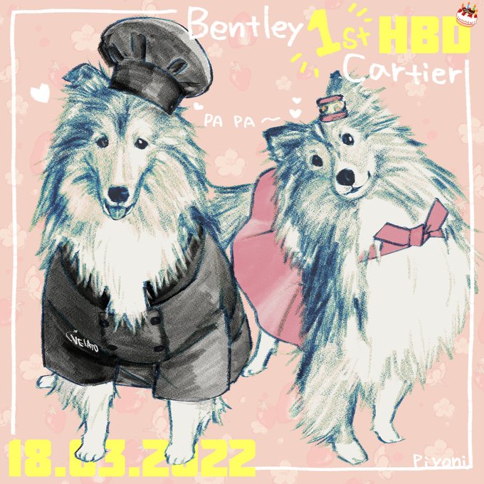 いつまでもパパと仲良くね🐰🐶🐶🎀 Happy birth day Bentley & cartier♡ Eat a lot, sleep a lot, and grow up💓 #bentleycartierO #BenTier1stBirthday
