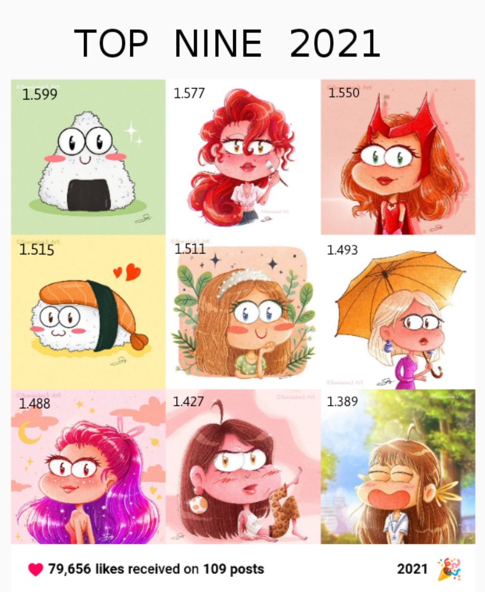 Here's my Best Nine for this 2021! 🤗💓🌺💫 . #SoniakasArt #moniOJOtes #bestnine #bestnine2021 #best9 #top9 #top9of2021 #topnine #topnine2021 #2021bestnine #cartoon #illustration #ilustracion #drawing #dibujo #ipadprocreate #cuteart #cutedrawing #cuteartstyle #artwork #kawaii