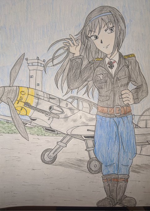 ホムラ少佐「それには及ばないわ」 ※お題を頂いたので描画してみました。 ・ほむらちゃの愛機はBf109K−6になります。 #絵描きさんと繋がりたい #魔法少女まどかマギカ #ミリタリー #Bf109
