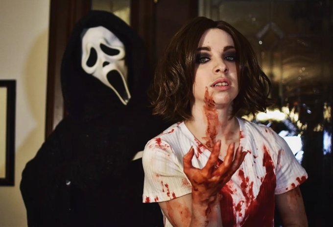 🔪 31 Days of Horror Cosplay 🔪 Day 7: Sidney Prescott and Billy Loomis (Scream 1996) Billy is my fiance @TazunayHitori !! #scream #billyloomis
