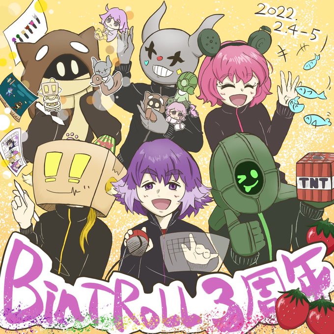 ものすごい今更で申し訳ないんですが ちまちま描いていた3周年おめでとう絵が完成しました🥳(遅) 改めてBinTRoLL3周年おめでとうございます!!!!!🎉 いつも元気もらってます🥺 これからもメンバーがたくさん楽しいことできますように🙏🌟 #bintrollFA #bintroll三周年記念