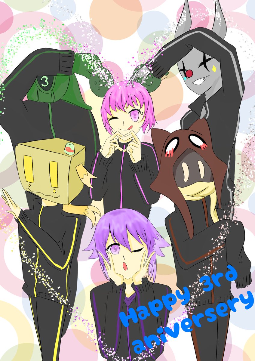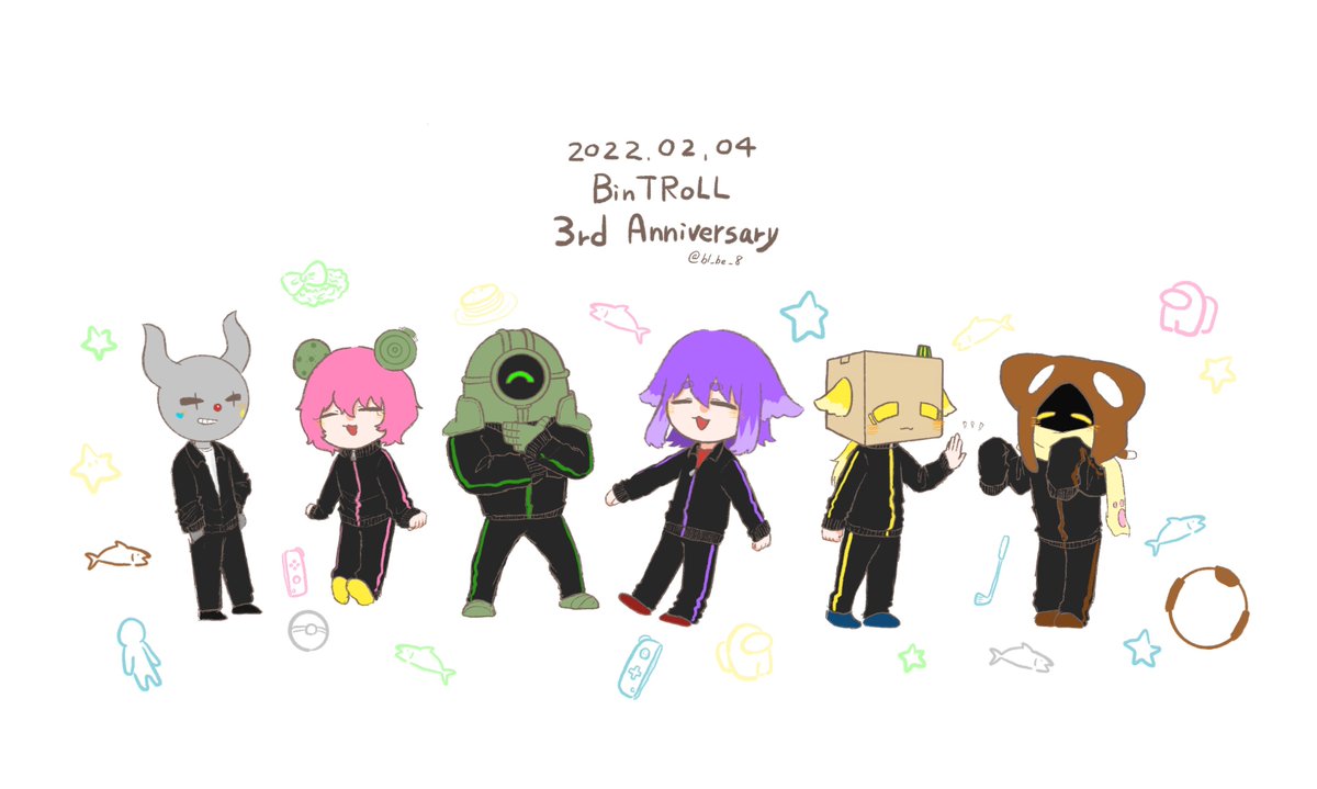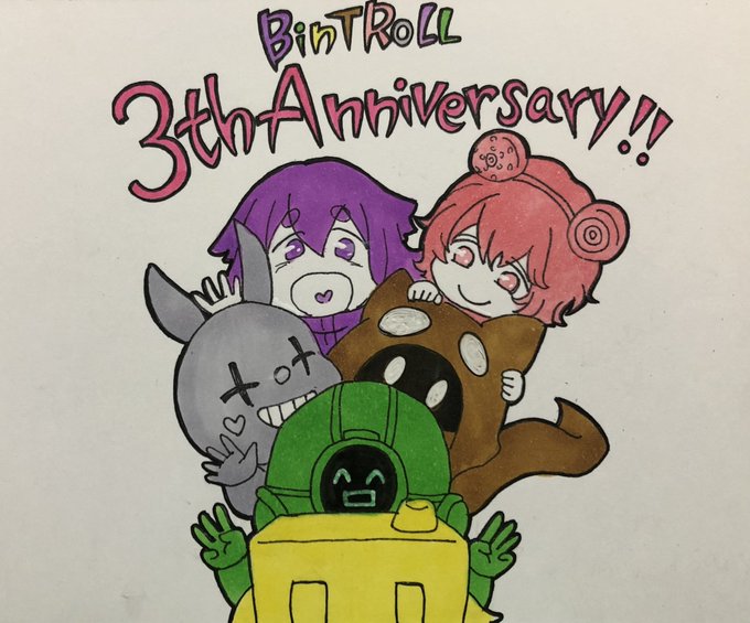 イラスト完成したぁぁぁ!!!🥺✨ 改めて、3周年おめでとうございます🎉🎈 今年もたくさん応援させてもらいますね〜!!! #bintrollFA #bintroll三周年記念 #BinTRoLL3周年記念