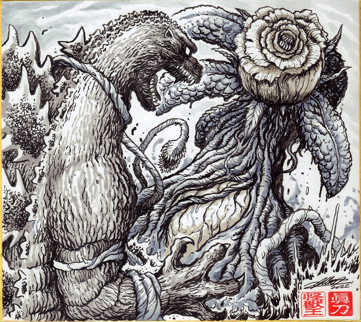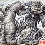 Finished my last commission from #AllMonstersAttack! Thanks to everyone who came out and supported us, hope to do it again next year! #Godzilla vs #Biollante
