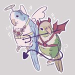 Day 4 of #inktober except I decide what the prompt is each day and it’s all bird themed! Todays prompt is #Halloween costume featuring my very own birds Astrid and Delphi! I have also provided pictures of the silly little guys themselves #inktober2022 #BirdTwitter #birdtober
