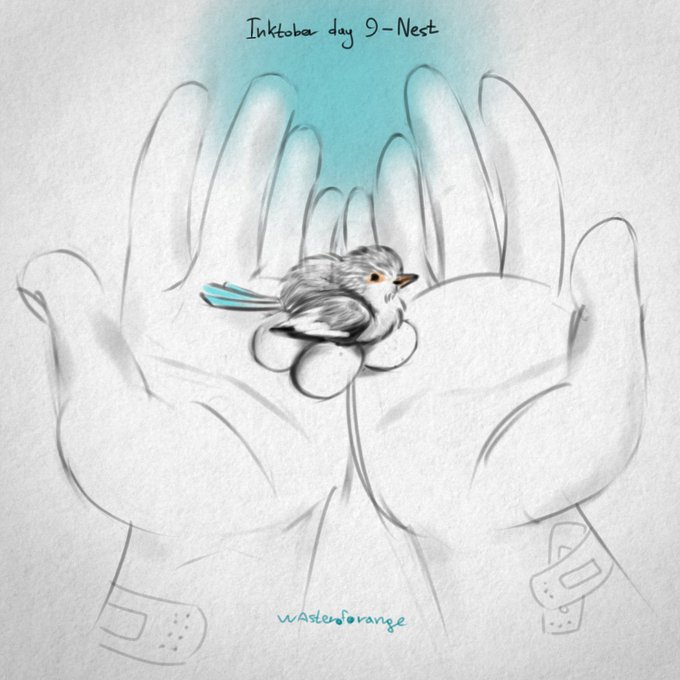 #inktober #inktober2022 Day 9 - Nest. I'll be your nest, little fairywren. #australia #fairywren #artistsontwitter #sketch #BirdTwitter