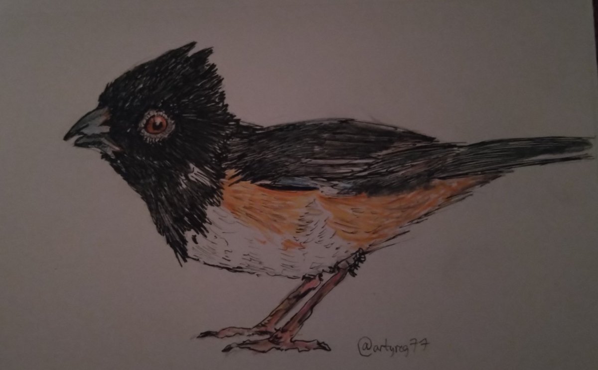 Todays #sketch is a Eastern Towhee for this month's #BirdWhisperer project #art #birds #artist #watercolorpainting sorry she's a little late 😁🦅🦉🦃🦤🦜🐦🦢🦚🦩🕊️🦆🐧🐓🤗❤️