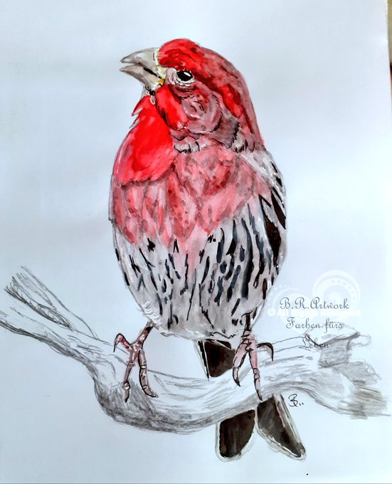 Little late but here is my House finch for August of #BirdWhisperer @BirdWhisperers #kleineKunstklasse #artwork #illustration #birds #FarbenFuersLeben #fabercastell #watercolor