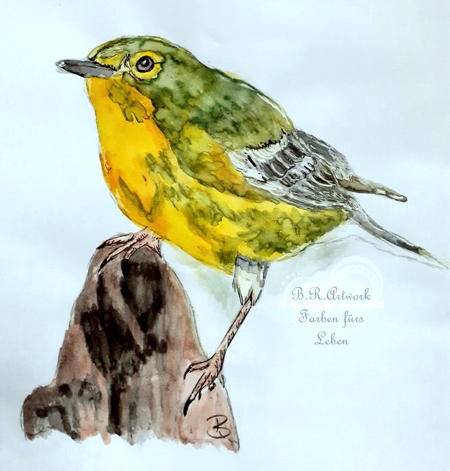 Pine Warbler (Kiefernwaldsänger) for #BirdWhisperer @BirdWhisperers #kleineKunstklasse #artwork #illustration #watercolor #ArtistOnTwitter #wildlife #birds #bird