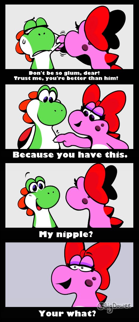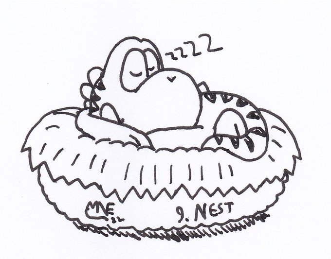 One for the #Inktober2022 Day 9 - Nest Pssst...Yoshis & Birdos Son Eloy is asleep^^ #Inktober @inktober #SuperMarioOC #yoshi #Birdo