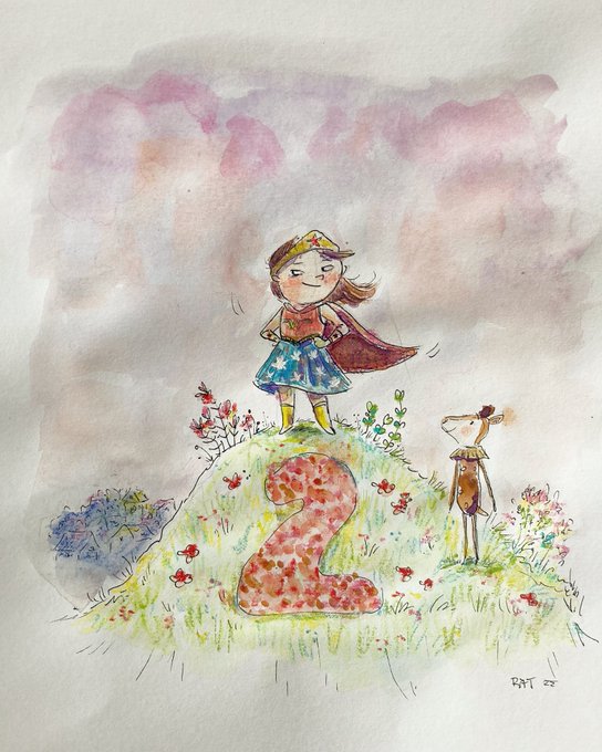 My girl Matilda has her 2nd Birthday today ♥️🎈She's a fan of #wonderwoman Peppa Pig and Mr. Fox are waiting for the big Party 😆#birthdaycard #illustration #dc #dcfanart