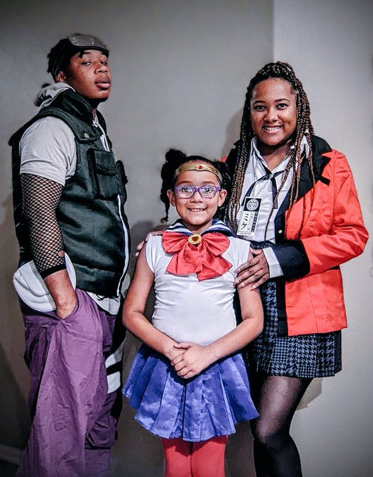 The little miss picked the theme for Halloween and we did the damn thing for her 🖤🙌🏾 #Cosplay #Blerd #Anitwt #kakegurui #SailorMoon #NARUTO #BlackFAMILY