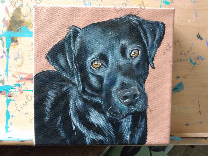 Finished super shiney Freddie for my Dad's 70th! I'll be sending this painting over to the UK soon along with my Twitter Art Exhibit postcard entry....card cut now to decide what to paint! 🤔💖 #blacklabrador #handsomechap #loveourdogs #familydog #labrador