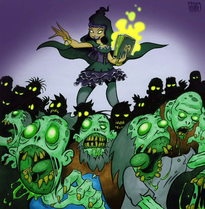 I finally got around to digitally coloring this piece from Inktober 2019 #inktober #mindless #characterdesign #characterart #dailysketch #dailydrawing #witch #sorceress #blackmagic #darkmagic #zombie #zombies #undead #necromancer #digitalart #digitalink #procreate #procreateart