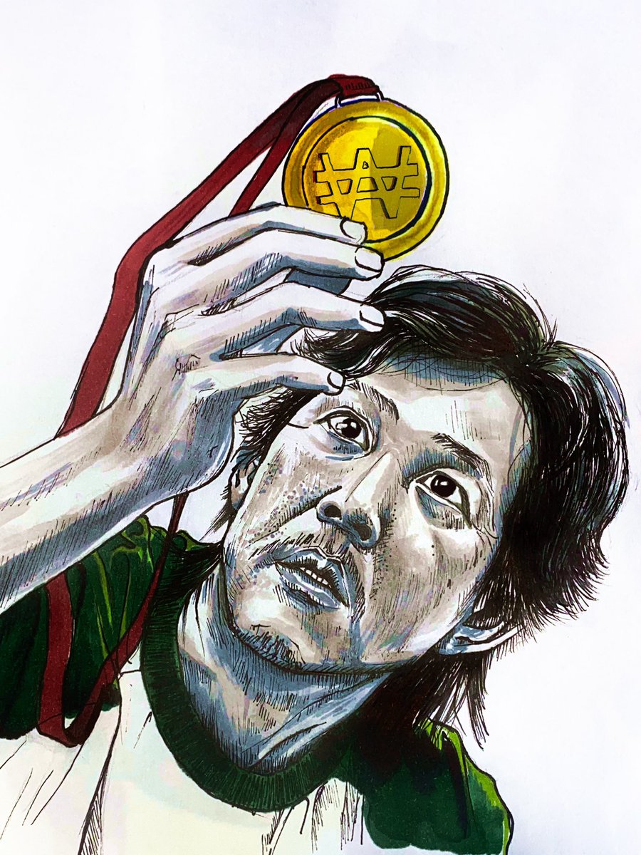 #inktober2021 Prompt: CHAMPION Lmao, my sister said I'm pandering with this one, 😂😂 but hey don’t we all love #SquidGame? Listed on opensea for 0.05 ETH: opensea.io/assets/0x495f9… #NFT #NFTCommunity #BlackNFTArtists