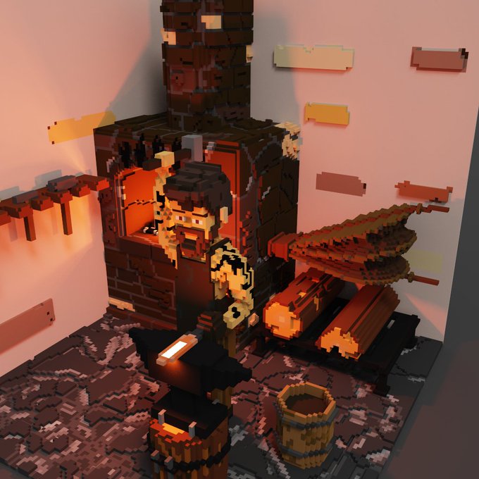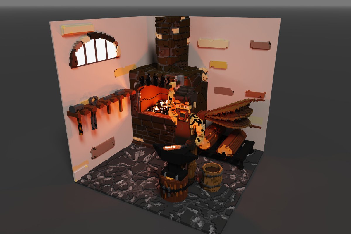 Blacksmith in voxel. One of my first voxel scenes. #voxel #voxelart #Magicavoxel #3dmodeling #Blacksmith