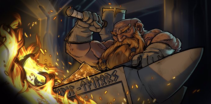 Clank clank clank! Love me some dwarves blacksmithing! What is your favourite fantasy race? Mine are dwarves, halflings and half orcs! Done for @Eviltailors website! #Fantasy #DungeonsAndDragons #DnD #Dwarf #Blacksmith #Illustration #InstaArt #ComicArt