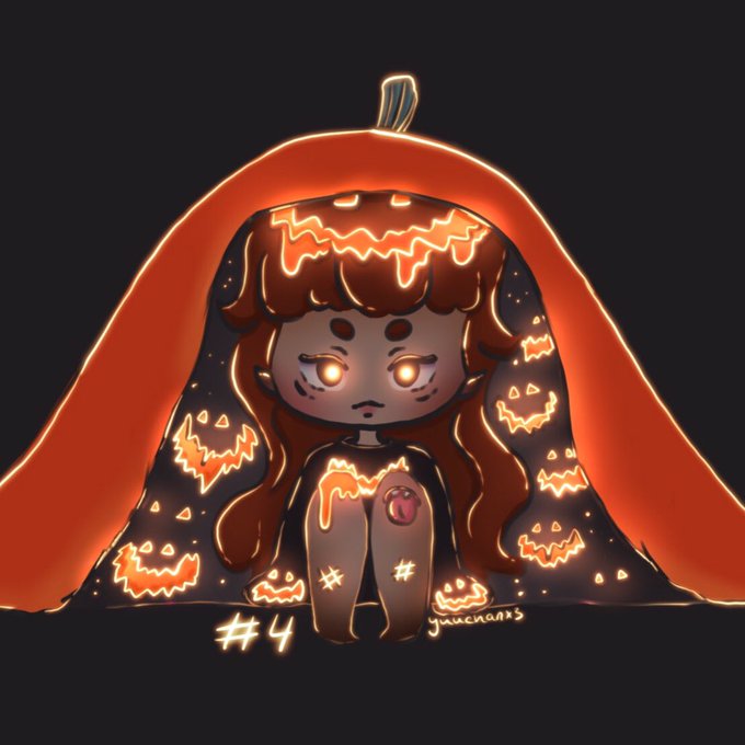 Inktober Day 4: Blanket 🎃😈 - #inktober #inktober2022 #inktoberday4 #chibi #cute #demon #monster #digitalart #procreate #pumpkin #blanket