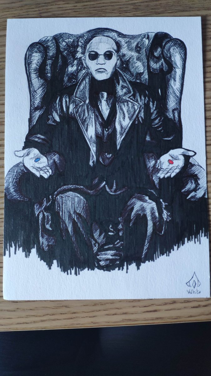 Day 10 : pick /choix J'adore, a chaque fois j'me dis j'y passe pas une heure et puis j'en passe deux ! XD #inktober #inktober2021 #inktober10 #matrix #pillule #bleu #rouge