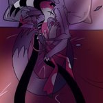 添い寝をしているストラスとブリッツ(朝と夜) ファンアート #HelluvaBossFanart #HelluvaBoss #Stolas #Blitzy #イラスト #ヘルヴァボス #ストラス #ブリッツ