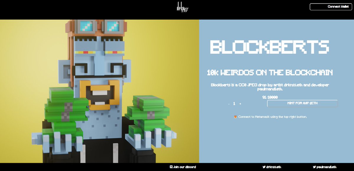 Come here to mint your #Blockberts blockberts.io or in the @cryptovoxels Metaverse at: cryptovoxels.com/play?coords=E@… (which is basicly the same, but more athmospheric) Mint: 0.07 #NFTCommunity #NFTCollection #nftcollector #NFTProject #NFTdrop #Voxel #voxelart #NFTartist