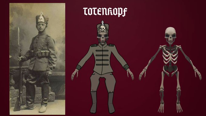I'm doing #blocktober and #inktober but doing them my own way. For #inktober2021 I'm doing skins for a Arena Shooter I'm currently doing some Level designs for #blocktobergd2021) I'm using the base of a skeleton on the right & sticking to the underworld theme.