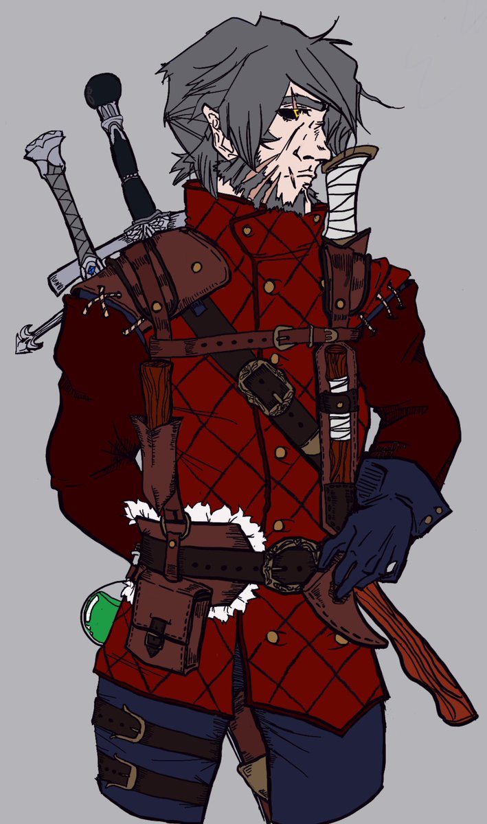 a couple doodles of my #eldenring oc dredge after he inherited the flame, and of my mans dr. marianna cross <3 #DnDcharacter #dndart #bloodhunter