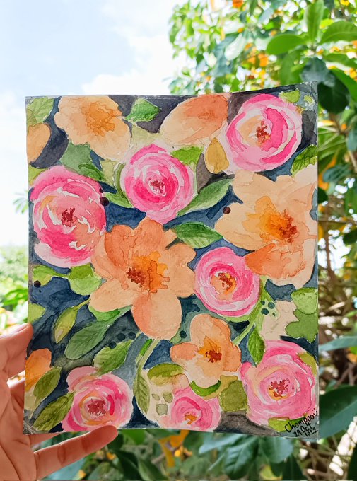 Quince in full bloom again Watercolour & pencil #sundayvibes #Flowers #painting #blossom #ArtistOnTwitter #artist #artistsoninstagram