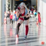 Rebirth Harley Quinn Cosplay by @marecosplay Photos by @FoodAndCosplay Taken at @cconstuttgart 19 #cosplay #blonde #harleyquinn #harleyquinncosplay #harleyquinnmakeup #dc #dccomics #dcrebirth #dcrebirthharley #redandblack #blueeyes #makeup #overknees