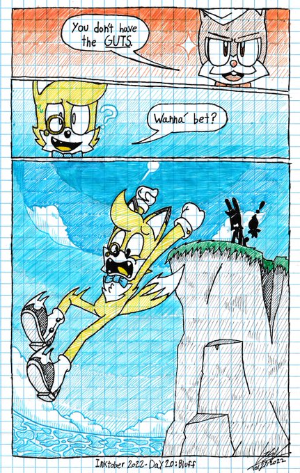 Inktober 2022 - Day 20: Bluff. When backed into a corner sometimes the only way to "Out Fox" your pursuer is to be creative & make you own exit. #Inktober #Inktober2022 #Inktober #InktoberDay20 #InktoberBluff #Bluff #SherwoodTheFaux #ScotchTheJackrabbit #originalcharacters
