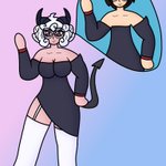 Another drawing for my gf @darkduskshine , this time her oc Shadow in the body of Modeus doing a Verosika Mayday cosplay, I think it looks super cute n.n xD #HazbinHotel #helltakerfanart #bodyswap #possession