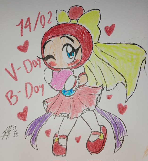 Akabon happy Birthday and Valentine day ❤️ (I've been really busy, this is a traditional drawing with basic markers 💦) Akabon is my favorite character, I love her so much ❤️ #Bomberman #Akabon #DigitalArt #ボンバーマン
