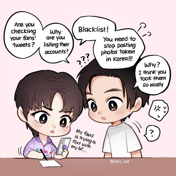 When PP said he's on Twitter... ❌ Check his fanclub' tweets ✔️ See BKPP shipping contents ✔️ Blacklist those who are trying to (hopelessly) flirt with P'Kin 🥲 #BomixPPkrittBoxSet #BomixPPKritt #bkppfanart