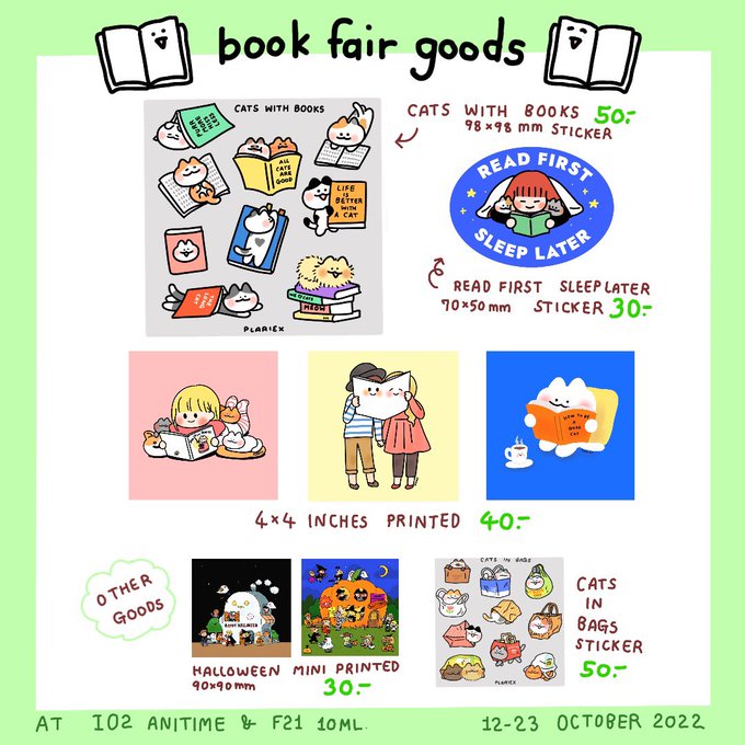 ตอนนี้มีของไปฝากขายที่ #งานหนังสือ ตุลาคม 2022 อีกบูธนึงค่า ที่บูธ H01(บูธสำนักพิมพ์แมงมุมบุ๊ค) ที่บูธนี้มีสมุดระบายสีสามแบบ กับอีกบูธที่ฝากขาย บูธ F21 (บูธสำนักพิมพ์สิบมิลลิเมตร) มีอาร์ตปริ้นกับสมุดระบายสีสามแบบ #มหกรรมหนังสือระดับชาติครั้งที่27 #ศูนย์ฯสิริกิติ์ #BookFairTH