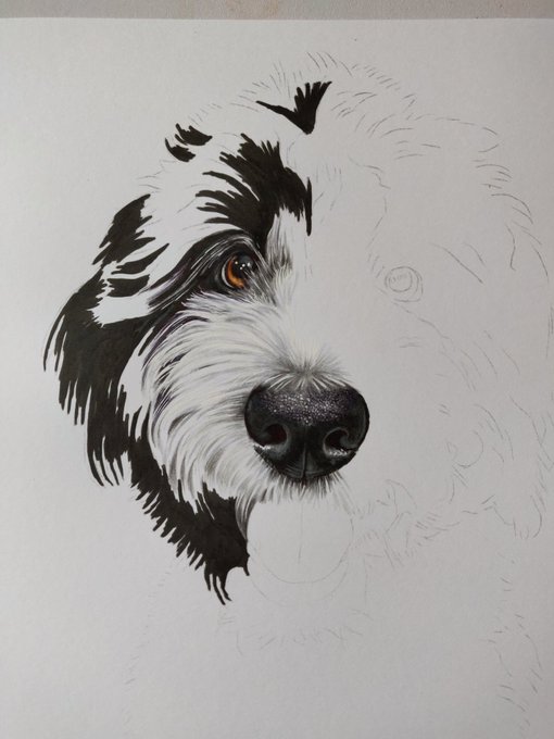More progress today on my latest furbaby portrait of gorgeous #Bordoodle Ralphie 🥰💕🐕🦺🐾x @GraemeDogfather @Milliganreports #Bordoodle #petportraits #art #artist #artwork #animalart #commissionsopen