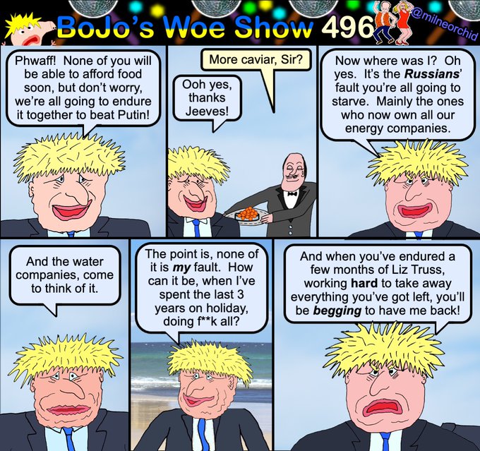 Boris Johnson surfaces briefly from his holiday to remind us that it's everyone's fault but his. #borisbrokebritain #DontPayUk #CostOfGreedCrisis #WorstPMever