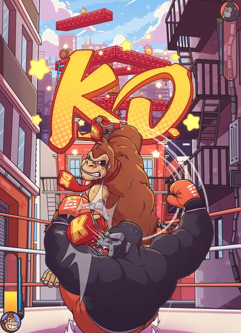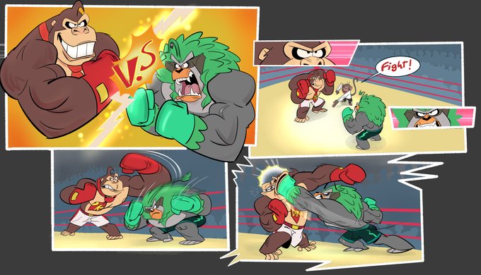 "Our King Of The Ring: Gorillas Of Gaming contest is underway, live from the Kangaroo Treehouse Village. We're four rounds into this match between Donkey Kong and Big Ape, and OH! A devastating right from DK! Big Ape is OUT!" Fight pic by @Otukimi0808! #BoxingDay #KOTRGOG