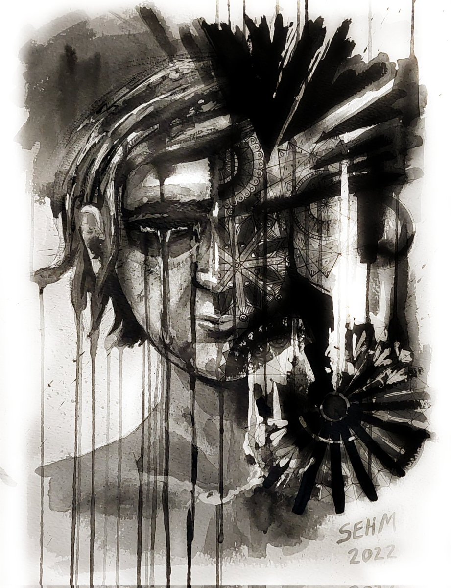 I finally finished my inking of the inktober prompt GEAR, which I'm renaming as BREAKDOWN. A3 inkwash on watercolour paper. #inktober2022 #inktober #inktoberday30 #gear #breakdown #mentalhealth #selfportrait