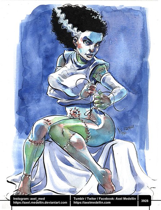 Mi último trabajo. Esto de la tinta china me está gustando. RT, pls. Follow me: Facebook.com/dianagarridoart Instagram.com/dianagarridoart #Frankenstein #BrideOfFrankenstein #UniversalMonsters #DianaGarrido #Garrido #art #Inktober