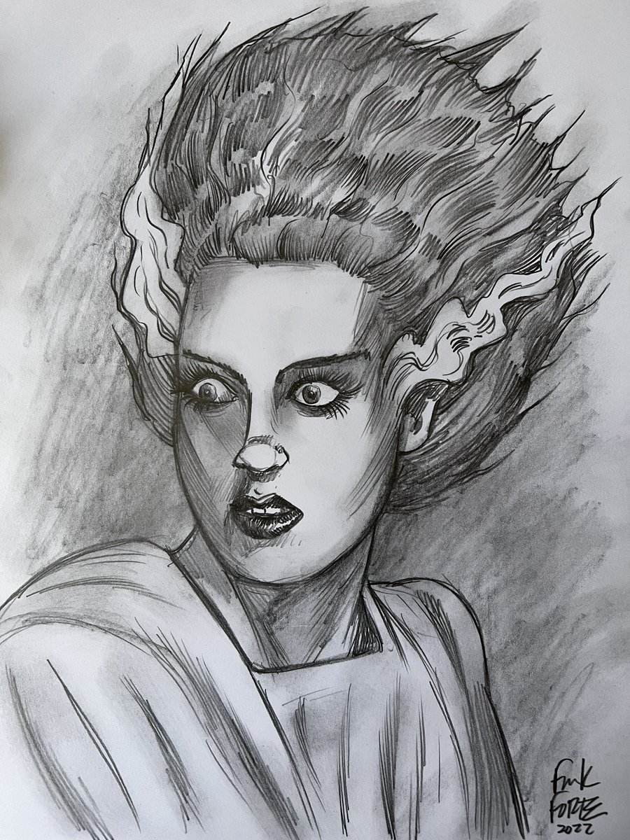 Ghosts of #Drawlloween #Inktober past. 2021's Bridal Shower of Frankenstein. #halloween #halloween2022 #frankenstein #drfrankenstein #brideoffrankenstein #bolts #madscientist #universal #universalmonsters #horror