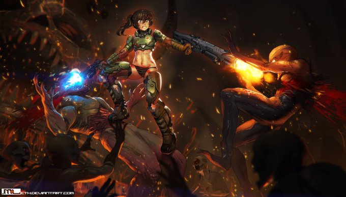 DOOMGUY has other places to be so Brooke is helping with the annual spring cleaning in hell! 🥰✨ #BrookeClub
