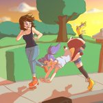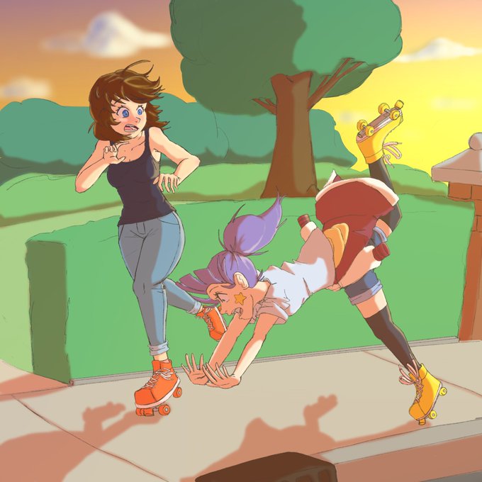 Alana and @HarxMLeth's Brooke are enjoying some late afternoon skating. Too bad Alana is terrible at it. 😅 #artober2022 #inktober2022 #BrookeClub