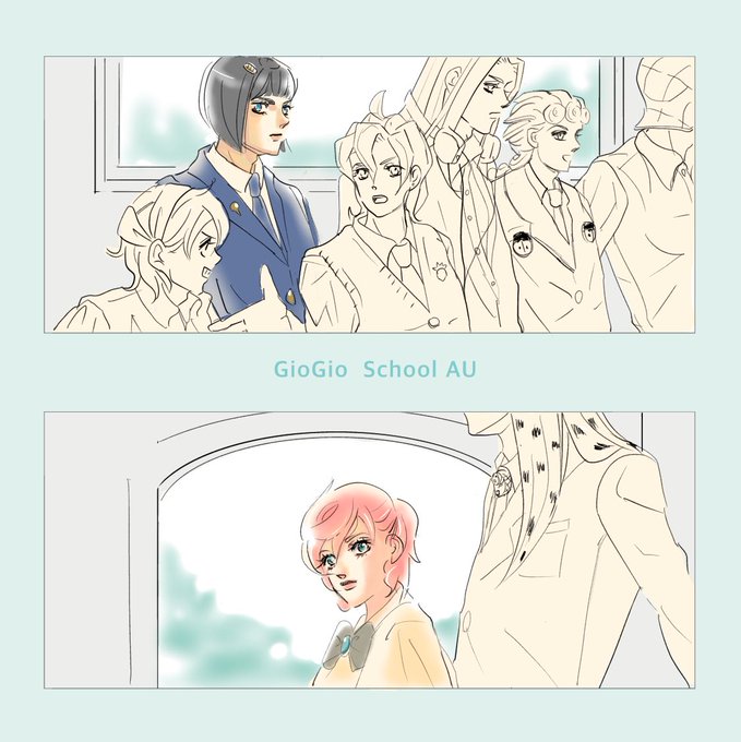 DAY1:school AU 初日のテーマで失礼します。 #ブチャトリGW祭り #BruTrishGoldenWeek 学パロ、転入生トリと妄想しまして‥ かっこいい男子グループの中でもトリの目はブチャラティを捉えそう♡